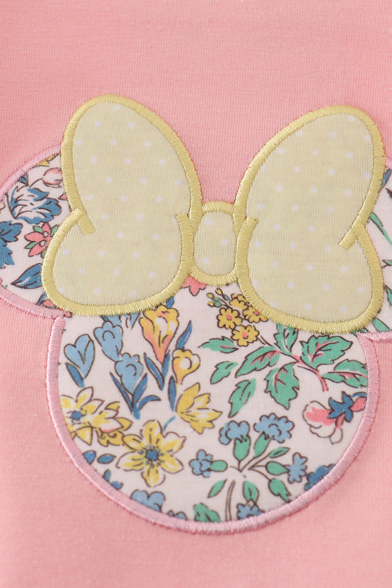 Pink floral character applique dress